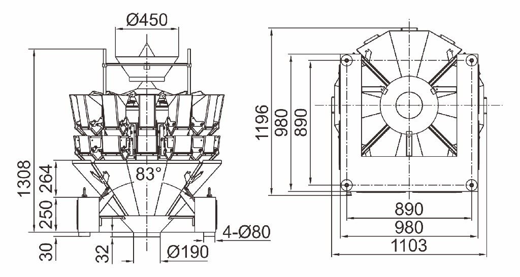 2.مجهزة بمخروط مركزي مصمم خصيصًا ، يمكن للمخروط العلوي الدوار أن يوزع المنتجات في كل وعاء مغذي خطي بالتساوي. مجهزة ببرامج قياس الوزن والعد.